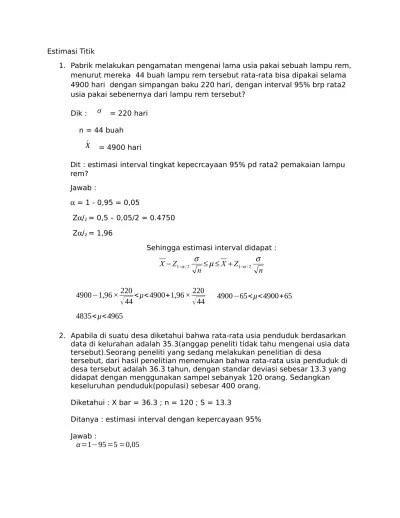 N=5 ̅ = 3,76 s = 1,2 tα/2 = t0,025; 68% (41) 68% menganggap dokumen ini bermanfaat (41 suara) 60k tayangan 39 halaman. May 21, 2013 · estimasi proporsiestimasi dengan dua proporsiestimasi variansestimasi dengan dua varianscontoh soal 1contoh soal 2 Proporsi sampel adalah penduga tak bias terhadap proporsi populasi. Besaran proporsi dalam sampel banyak dipakai